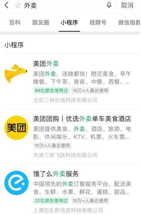 假设你去搜索“外卖”,那名字里有外卖两个关键词的肯定会出现。