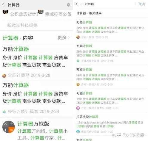 只要开启了该功能,小程序每一个页面都能被直接搜索到,比如搜索“计算器”,在内容一栏中就会展示页面中含有“计算器”的小程序,点击之后直达该页面。