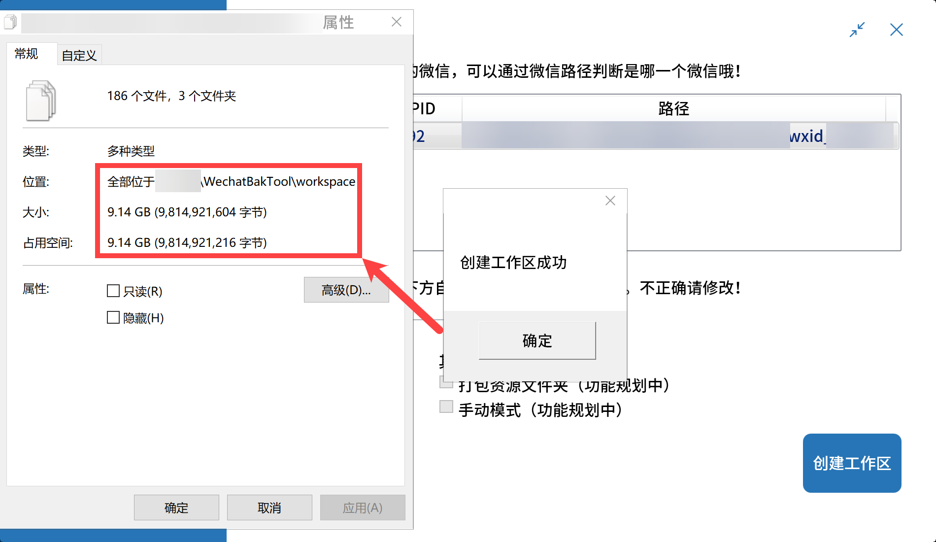 3.在新建工作区界面,选择要创建工作区的微信进程,并确认下方微信号是否正确