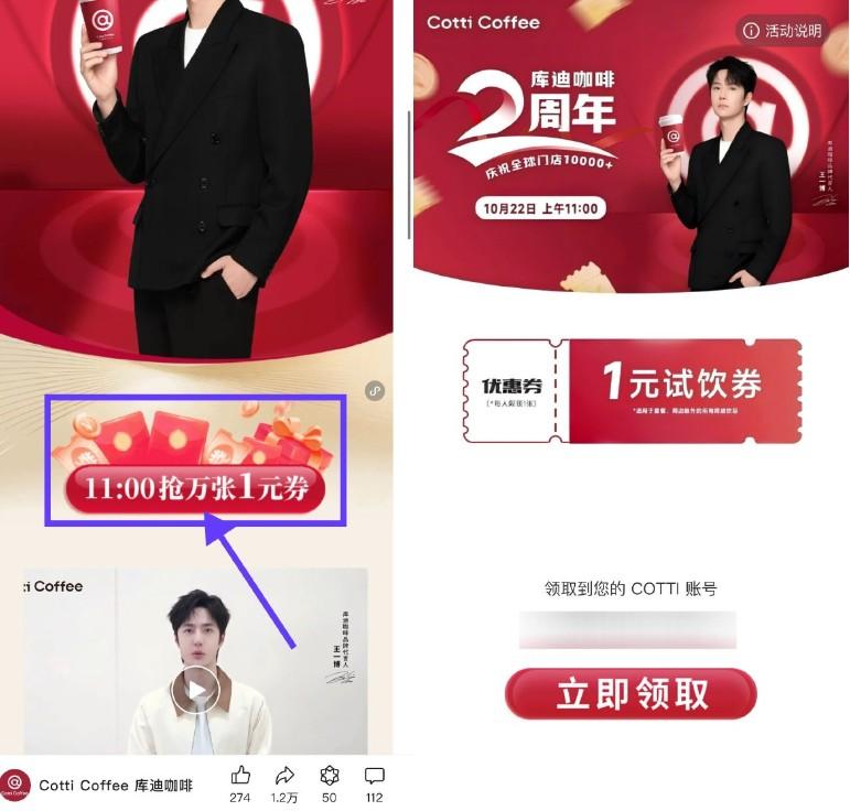 库迪咖啡11点抢1万张试饮券