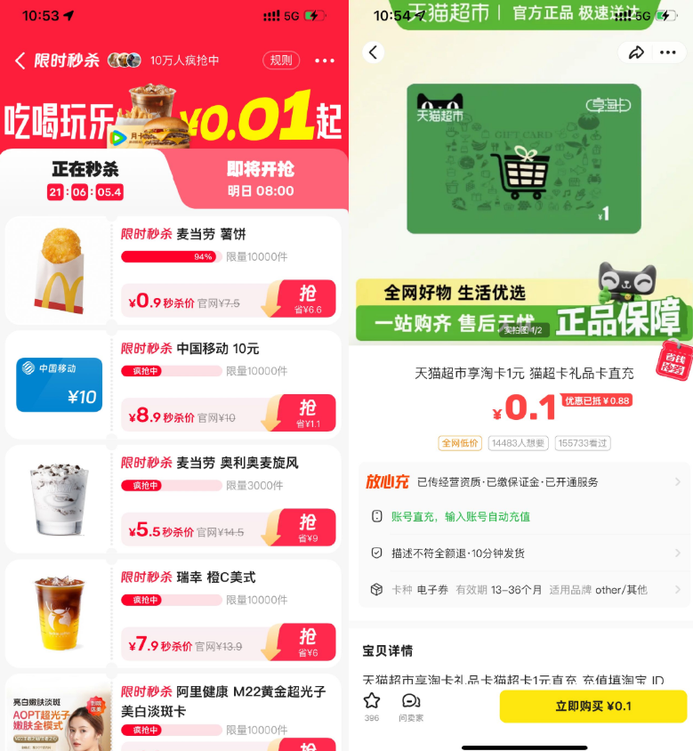 - 11-04 淘宝天猫超市惊喜口令抽0.2-5元天猫超市卡
