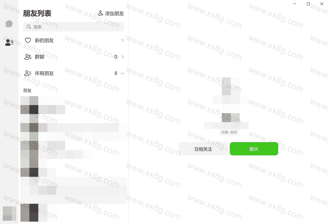 登录后,加载并不快速的抖音聊天就显示出抖音好友了,软件布局相当统一,左侧一栏是聊天和好友列表界面切换按键,中间一栏是好友列表,右侧是包括聊天框在内的详情展示。