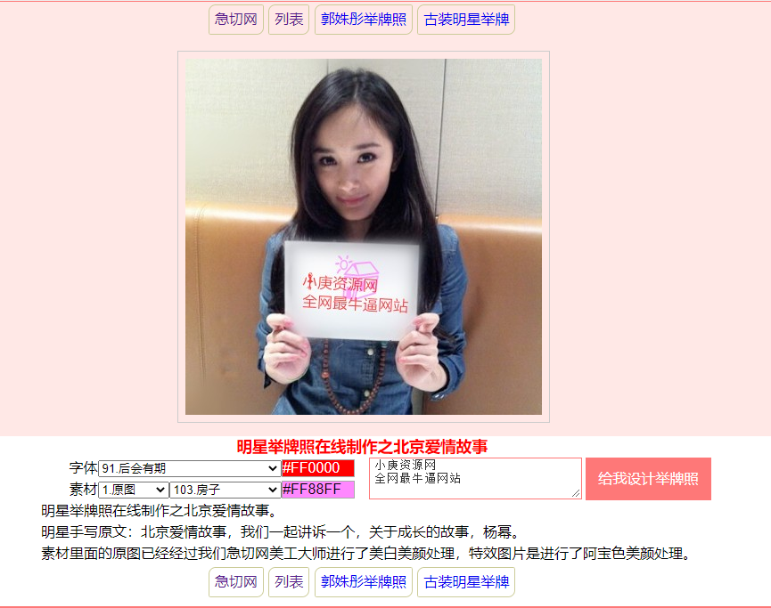 在线制作举牌照 美女举牌照在线制作 明星举牌照生成器