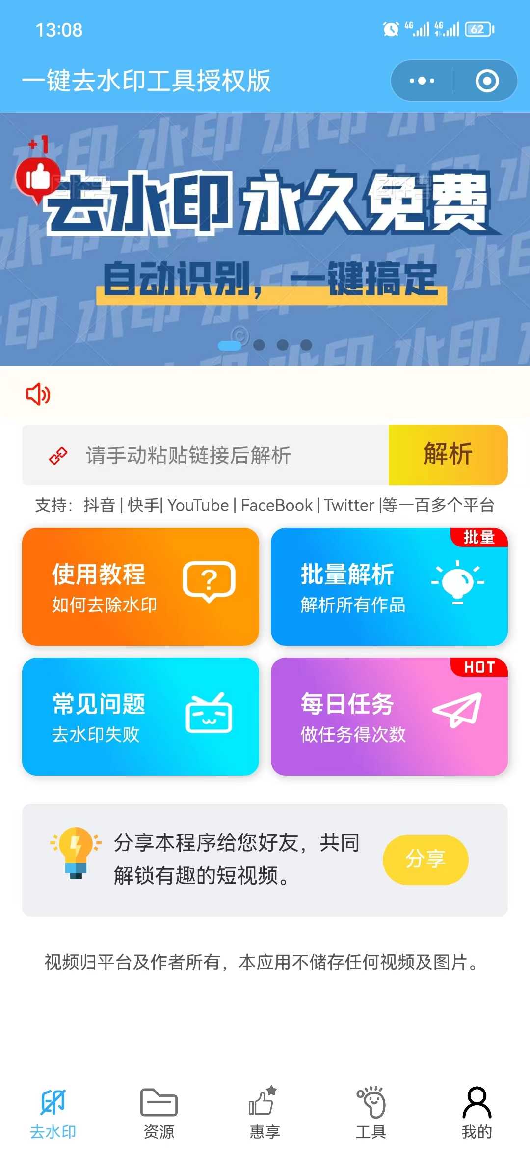 去水印小程序目前流量很大,引流或跑流量主赚钱非常好