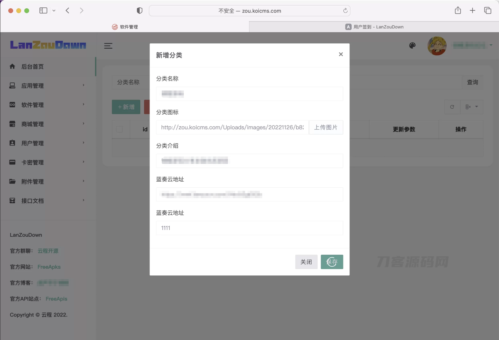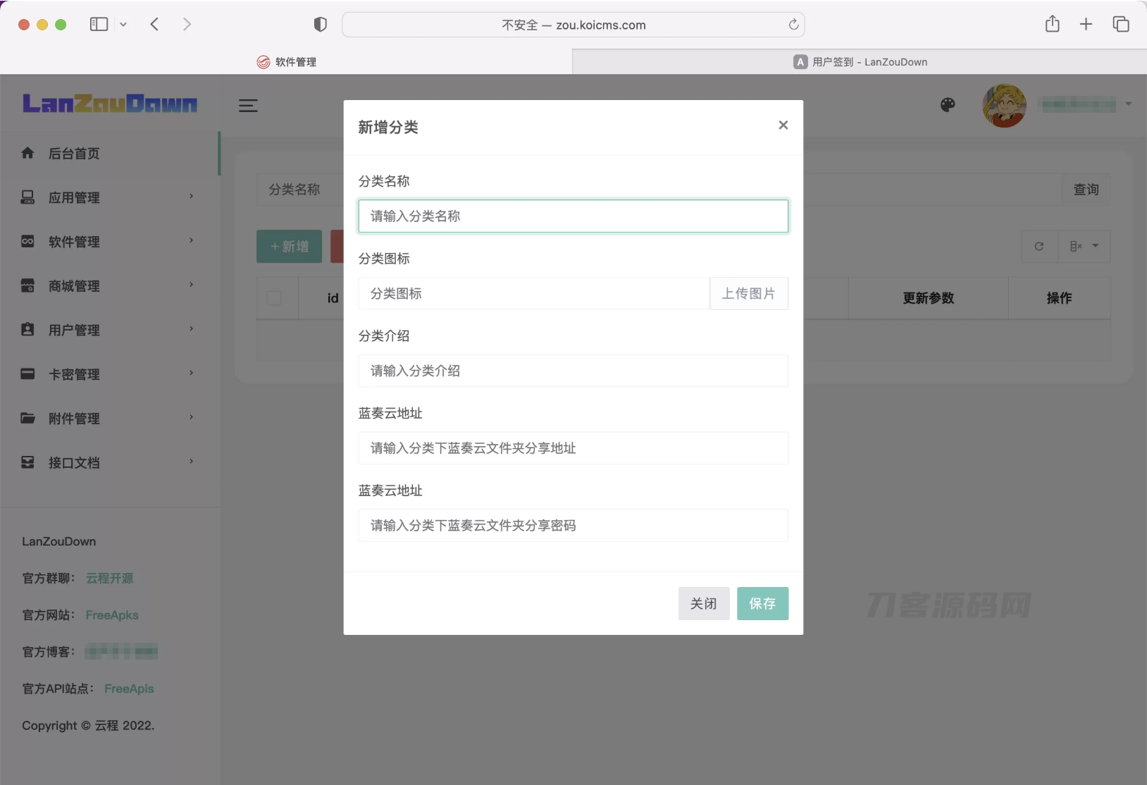 蓝奏云软件库,添加分类填入蓝奏云文件夹分享链接,链接密码即可。