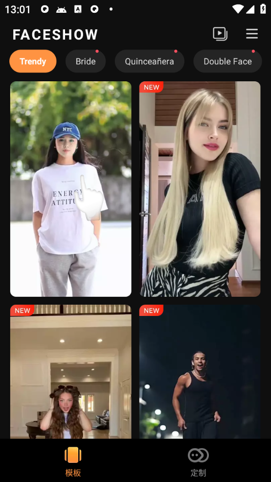 脸秀FaceShow是一款能够进行AI换脸的手机换脸换装神器,操作简单,只需要提供一张自己的正面照片,就能够轻松换上各种不同类型的角色和装扮,你想要的风格在这里都能够找到,平台承诺制作完成后不会留下用户任何面部特征和个人信息,最大限度的保证用户的信息安全,合成技术强大,一键轻松修图,完全不需要担心有任何问题,各类模板资源都是免费为用户提供,喜欢这款换脸换装神器的小伙伴们快来下载试试吧!