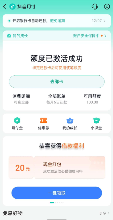 7.你选择抖音月付然后继续实名绑卡