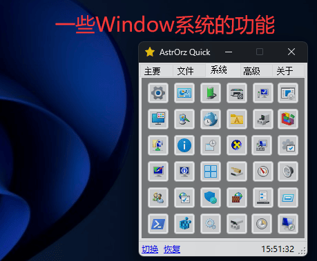 另外软件还自带了很多Windows的快捷方式,方便一些找不到的朋友,能够快速打开使用。