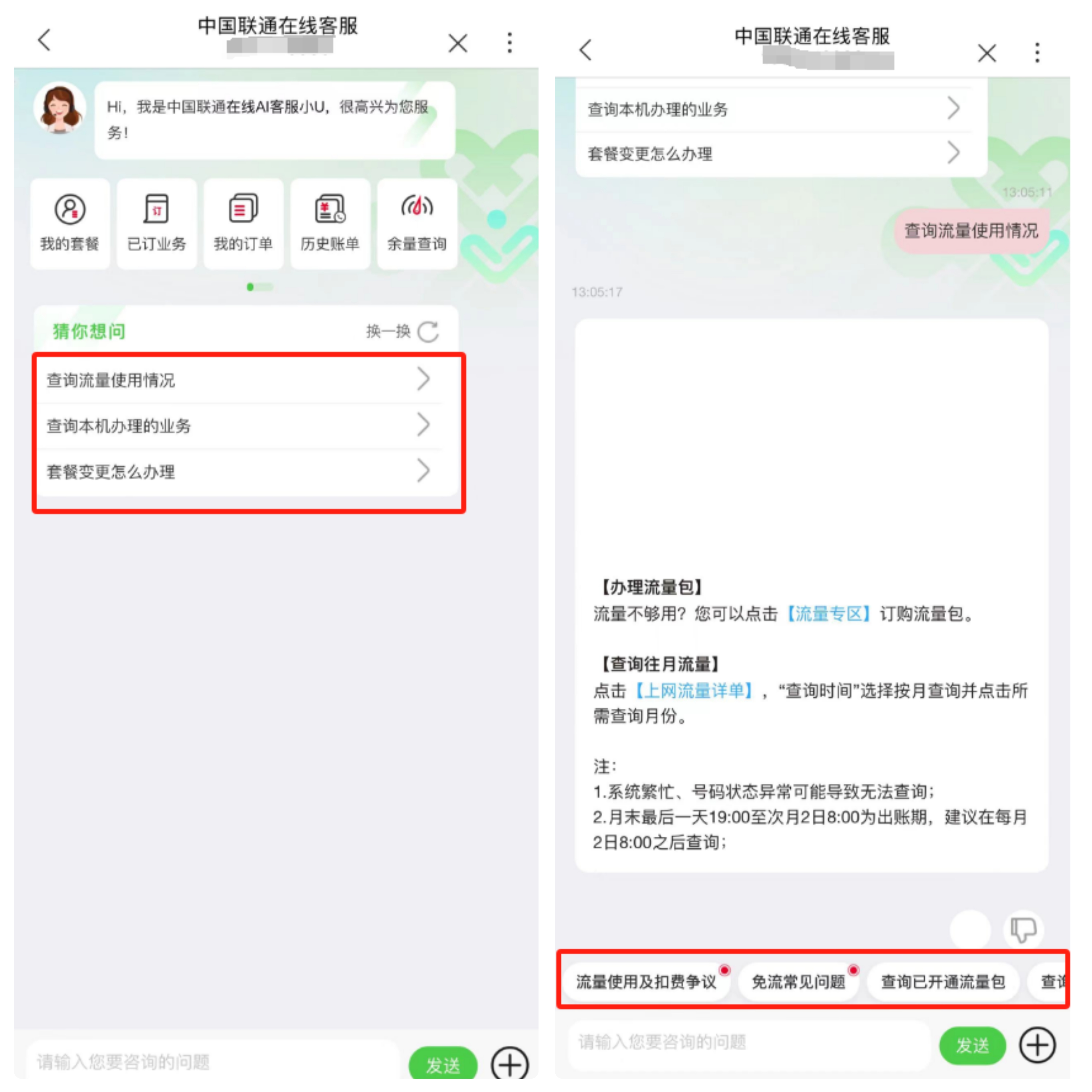 进入业务咨询页面在【猜你想问】任选一项问题,点击后,再点击下方任意一个推荐问题即可。