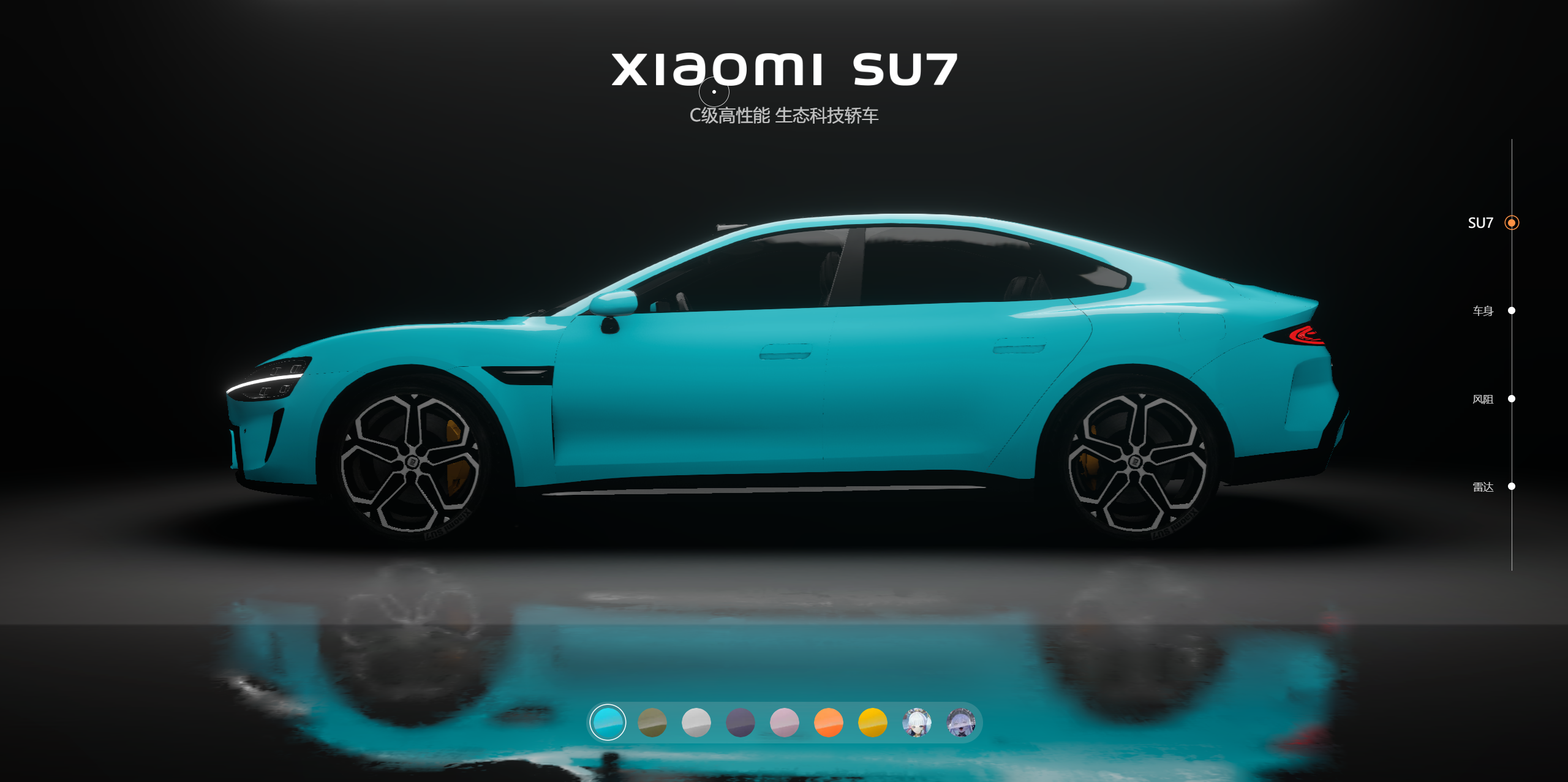 响应式小米汽车su7全色系展示html源码,
