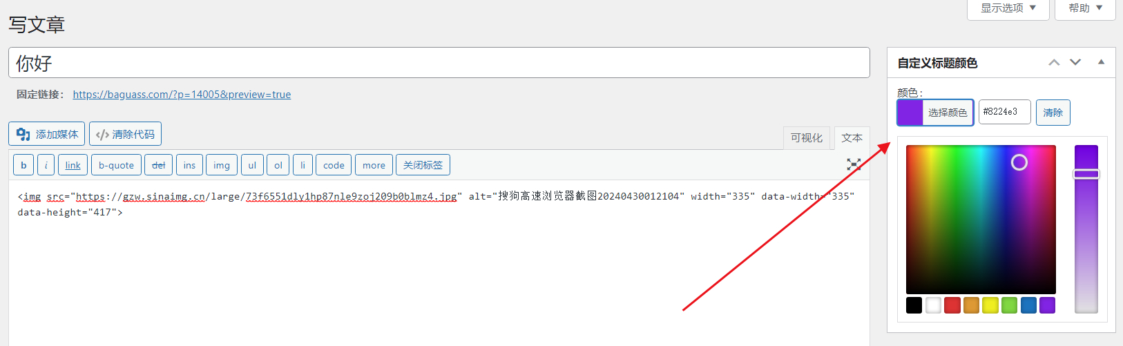 文章编辑时,右边会出现一个标题颜色设置,可以设置为任何颜色