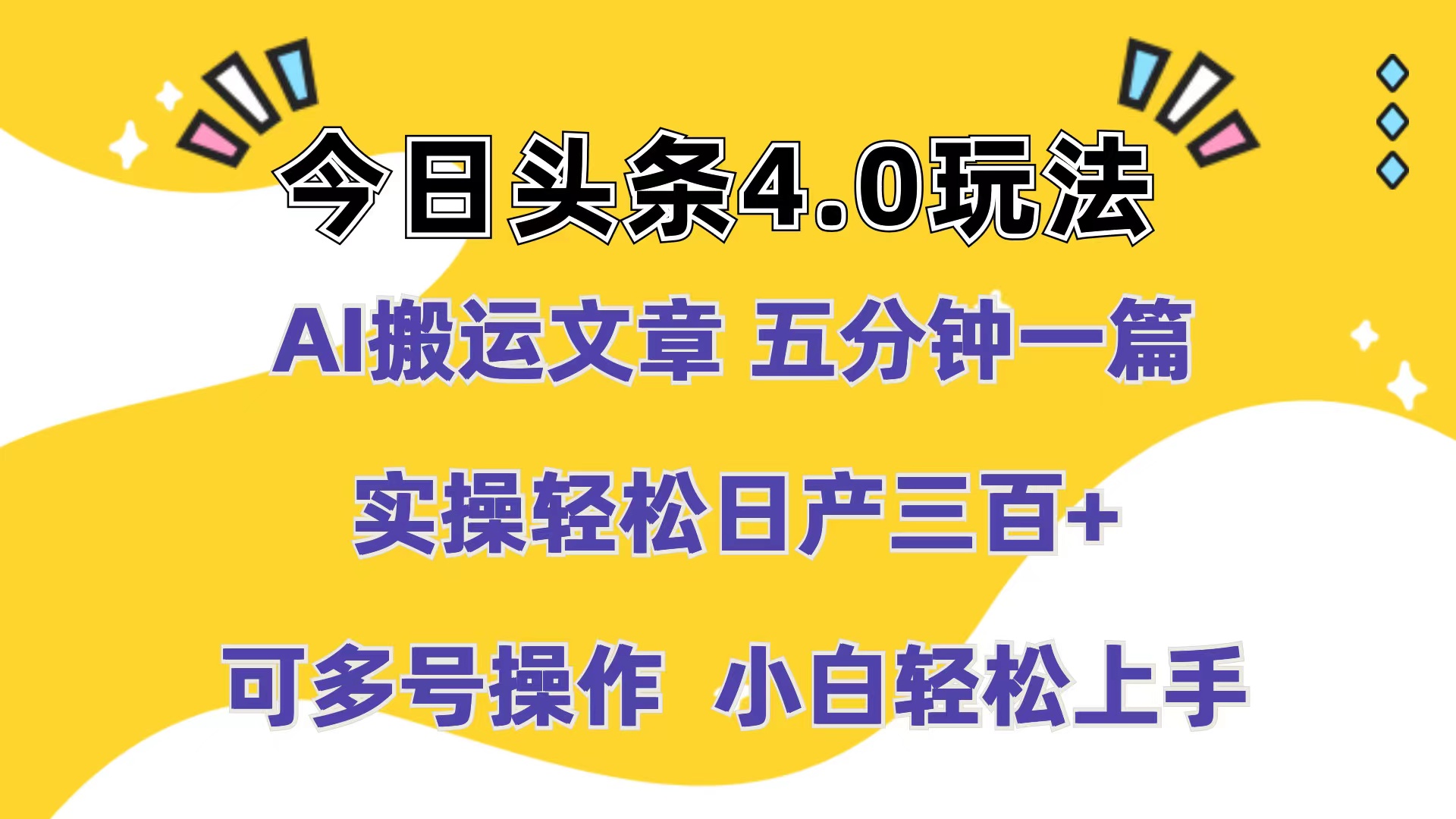 今日头条4.0玩法,AI搬运文章 五分钟一篇,实操轻松日产300+,可多号操作,小白轻松上手