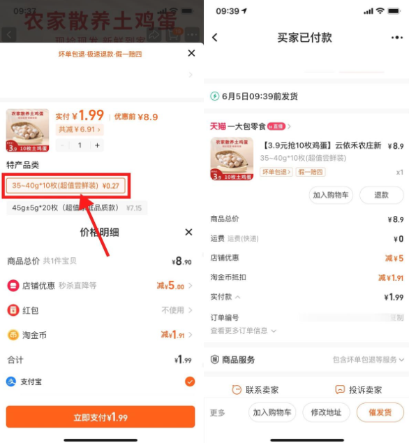 淘宝打开活动->部分人拍10枚选项,自动抵扣淘金币后1.99亓到手