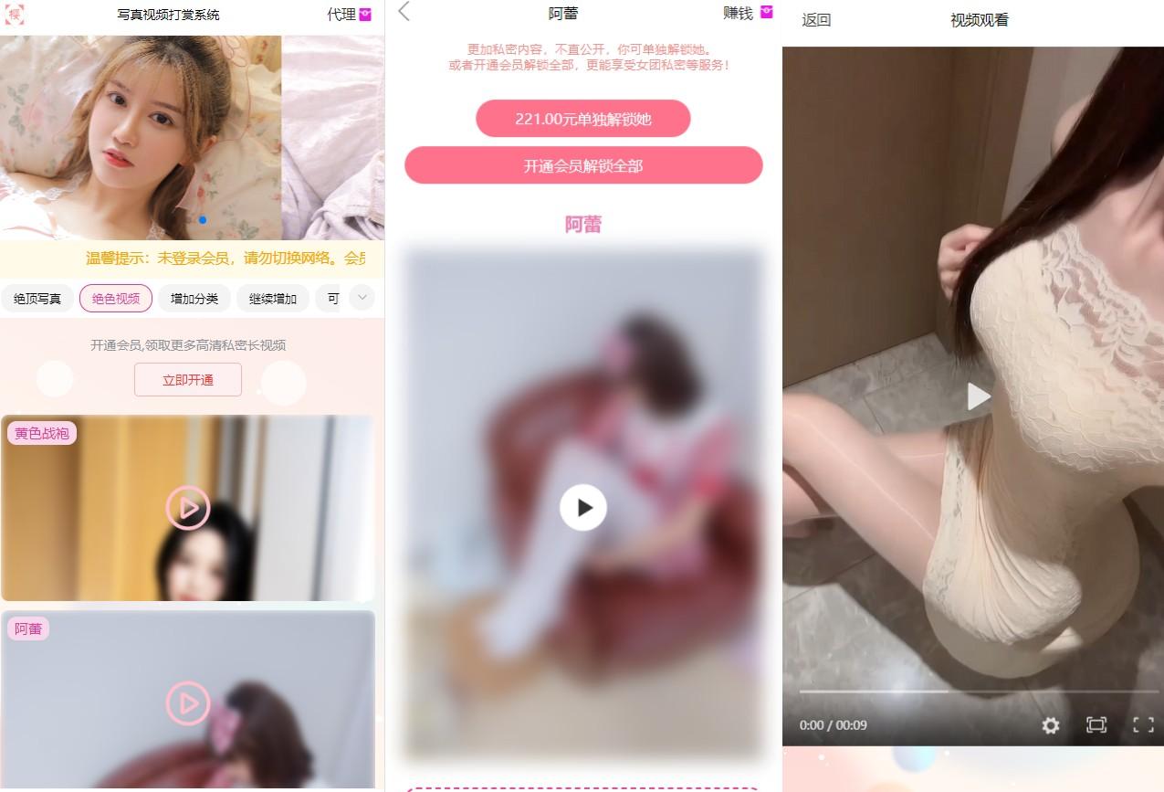 这是一款开源的写真图片及视频打赏系统源码,顾名思义他可以做写真图片打赏站也可以做视频打赏站,支付对接了易支付,拥有独立代理后台,全部源码无加密,另外也可以配合付费进群使用。支付扣量、域名防洪这些基本的就不介绍了,看图吧!留给有需要的人!请勿用于违法用途,否则后果自负!